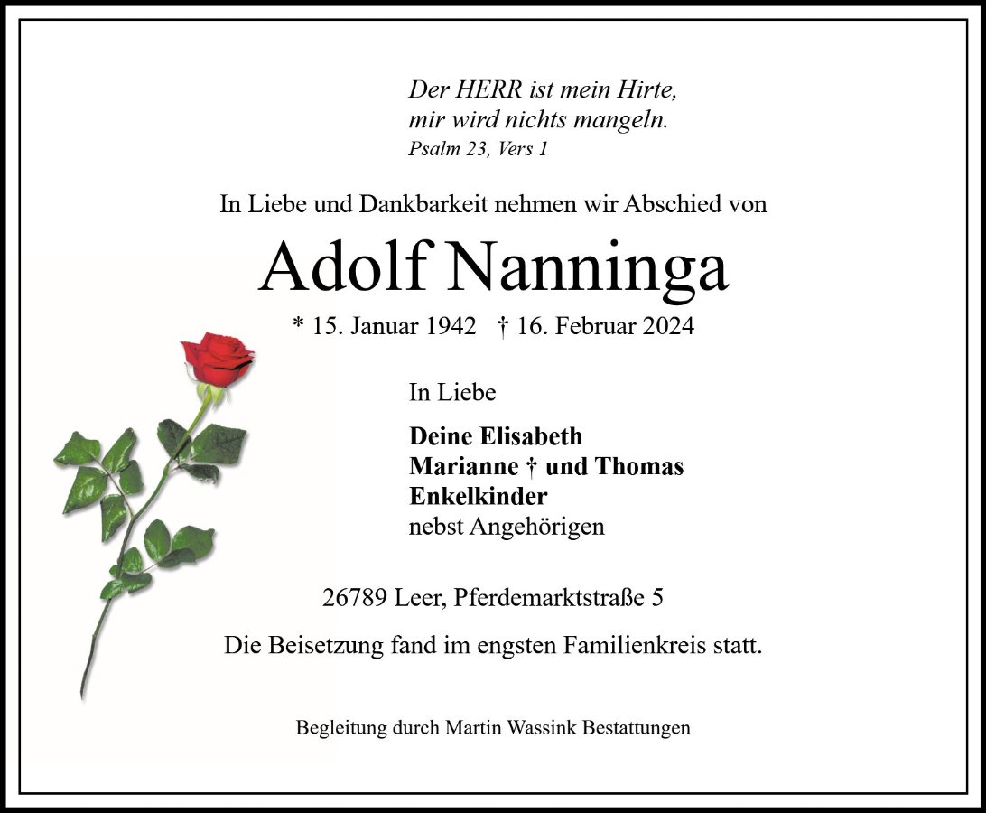 Adolf Nanningagestorben am 16. Februar 2024