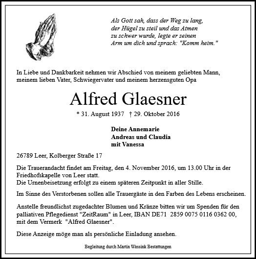 gestorben am 29. Oktober 2016 in Leer