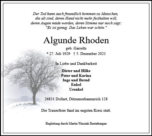 gestorben am 5. Dezember 2021 in Bunde