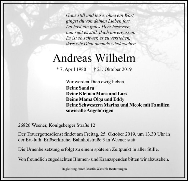 Andreas Wilhelmgestorben am 21. Oktober 2019