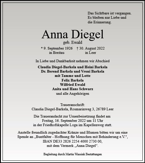 wir wünschen Ihnen von Herzen viel Kraft, dass Sie Menschen um sich haben, die Ihnen in dieser schweren Zeit beistehen und Halt geben. Zusätzlich können Sie auf dieser Gedenkseite Erinnerungen teilen und so das Andenken gemeinsam wachhalten.