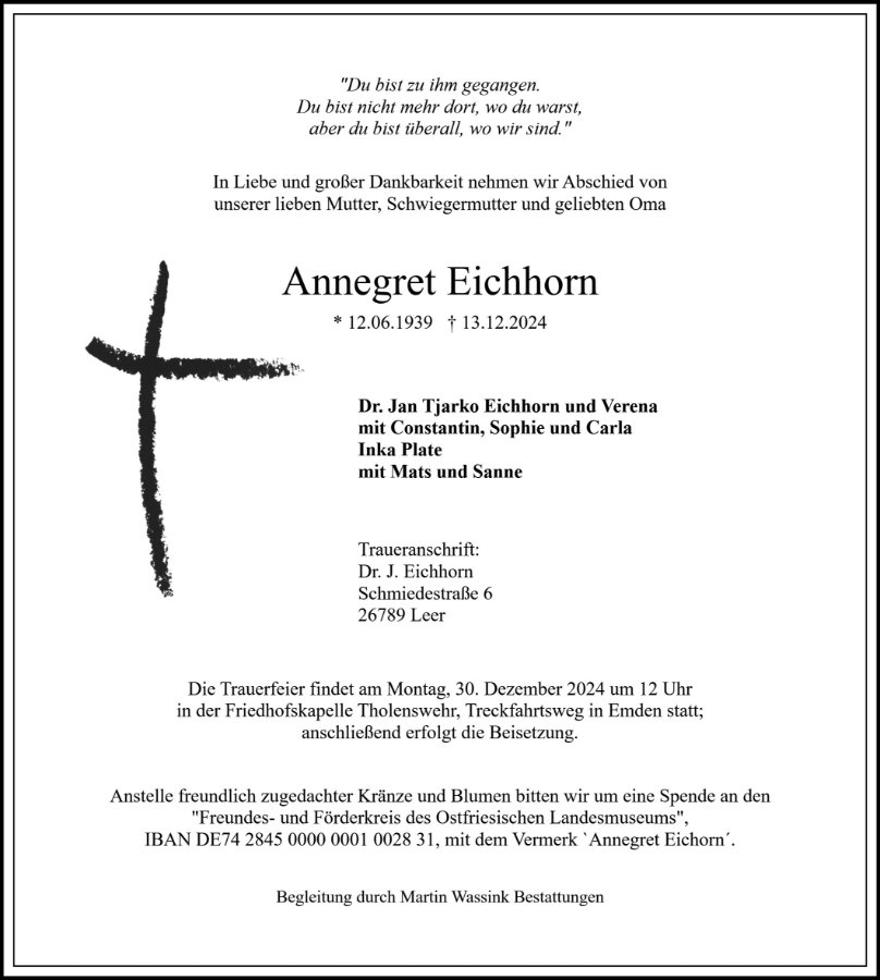 Annegret Eichhorngestorben am 13. Dezember 2024