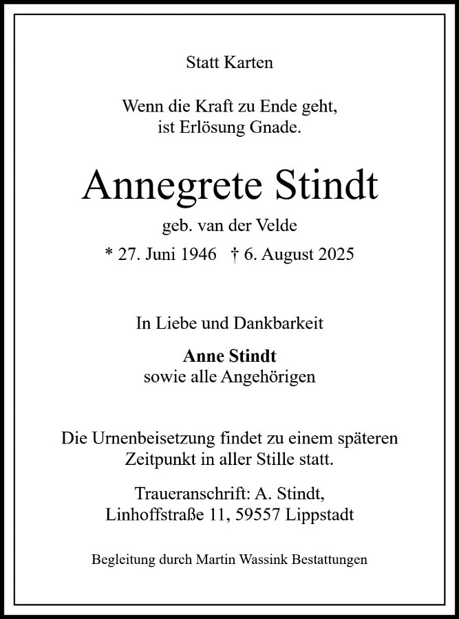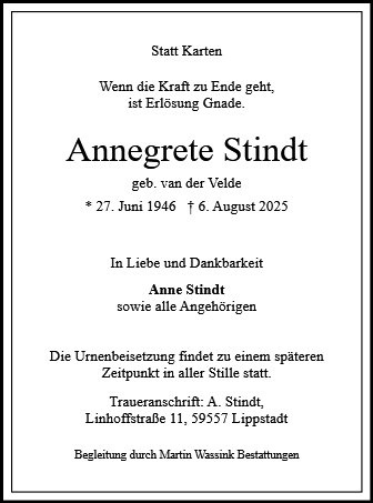 Annegrete Stindt geb. van der Velde