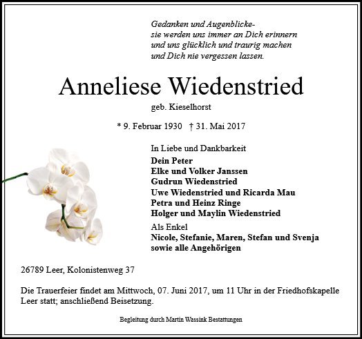 Anneliese Wiedenstried geb. Kieselhorst