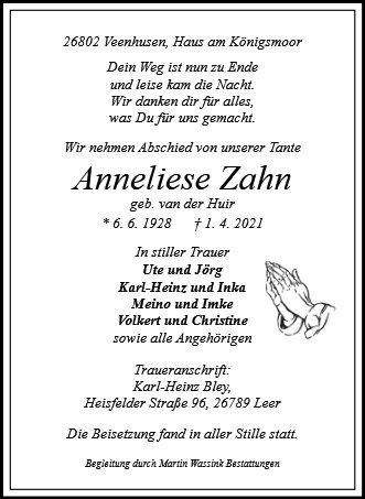 Anneliese Zahn geb. van der Huir