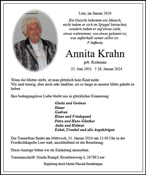 wir wünschen Ihnen von Herzen viel Kraft, dass Sie Menschen um sich haben, die Ihnen in dieser schweren Zeit beistehen und Halt geben. Zusätzlich können Sie auf dieser Gedenkseite Erinnerungen teilen und so das Andenken gemeinsam wachhalten.