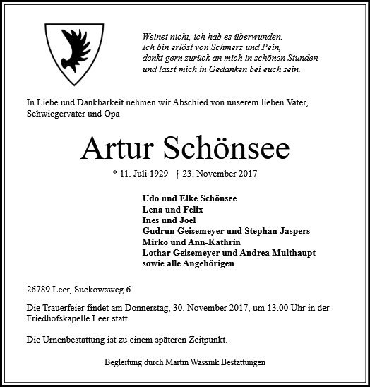 gestorben am 23. November 2017 in Leer