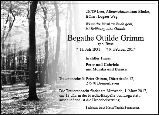 Begathe Ottilde Grimm geb. Buse