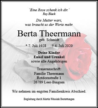 wir wünschen Ihnen von Herzen viel Kraft, dass Sie Menschen um sich haben, die Ihnen in dieser schweren Zeit beistehen und Halt geben. Zusätzlich können Sie auf dieser Gedenkseite Erinnerungen teilen und so das Andenken gemeinsam wachhalten.