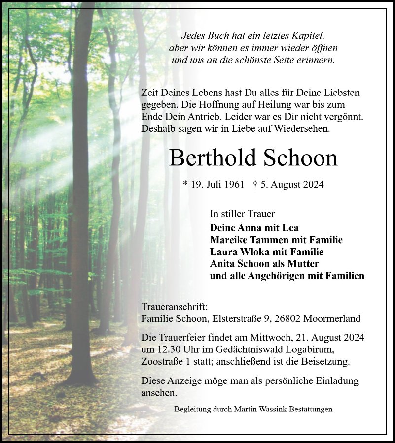 Berthold Schoongestorben am 5. August 2024