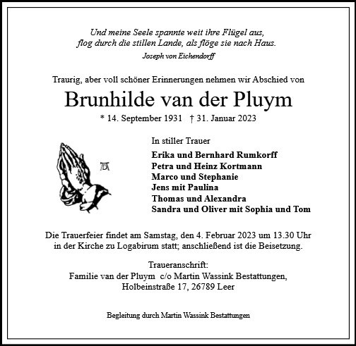 wir wünschen Ihnen von Herzen viel Kraft, dass Sie Menschen um sich haben, die Ihnen in dieser schweren Zeit beistehen und Halt geben. Zusätzlich können Sie auf dieser Gedenkseite Erinnerungen teilen und so das Andenken gemeinsam wachhalten.