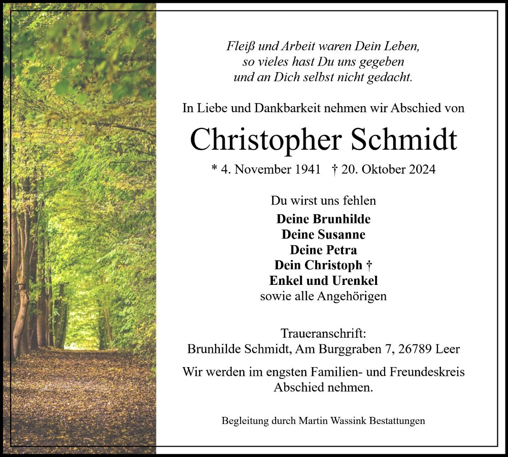 Christopher Schmidtgestorben am 20. Oktober 2024