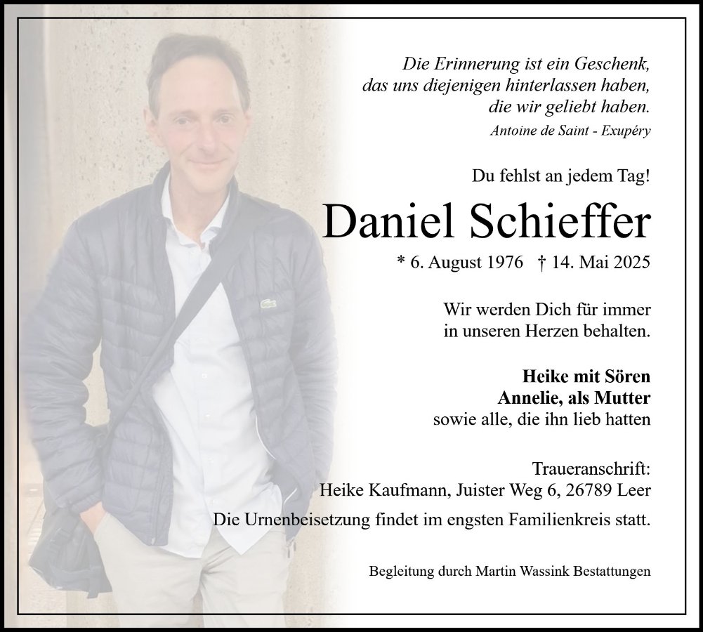 wir wünschen Ihnen von Herzen viel Kraft, dass Sie Menschen um sich haben, die Ihnen in dieser schweren Zeit beistehen und Halt geben. Zusätzlich können Sie auf dieser Gedenkseite Erinnerungen teilen und so das Andenken gemeinsam wachhalten.