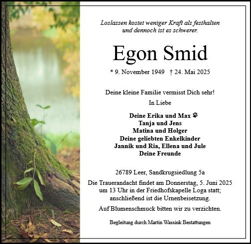 Erika & Familie wünschen wir die nötige Kraft für die Trauerphase, und ein Lächeln für die vielen Erinnerungen am Sternenhimmel.