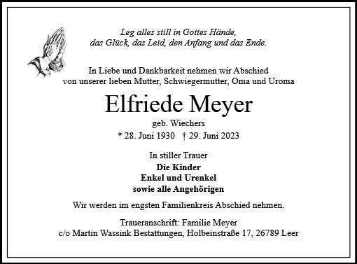 wir wünschen Ihnen von Herzen viel Kraft, dass Sie Menschen um sich haben, die Ihnen in dieser schweren Zeit beistehen und Halt geben. Zusätzlich können Sie auf dieser Gedenkseite Erinnerungen teilen und so das Andenken gemeinsam wachhalten.