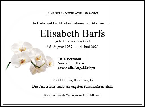 Lieber Berthold, liebe Sonja, Euch gilt mein tiefstes Mitgefühl und ich wünsche Euch ganz viel Kraft