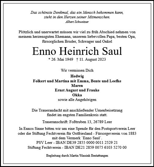 mit großem Entsetzen und tiefer Trauer haben wir erst heute vom Tod von Enno erfahren.
