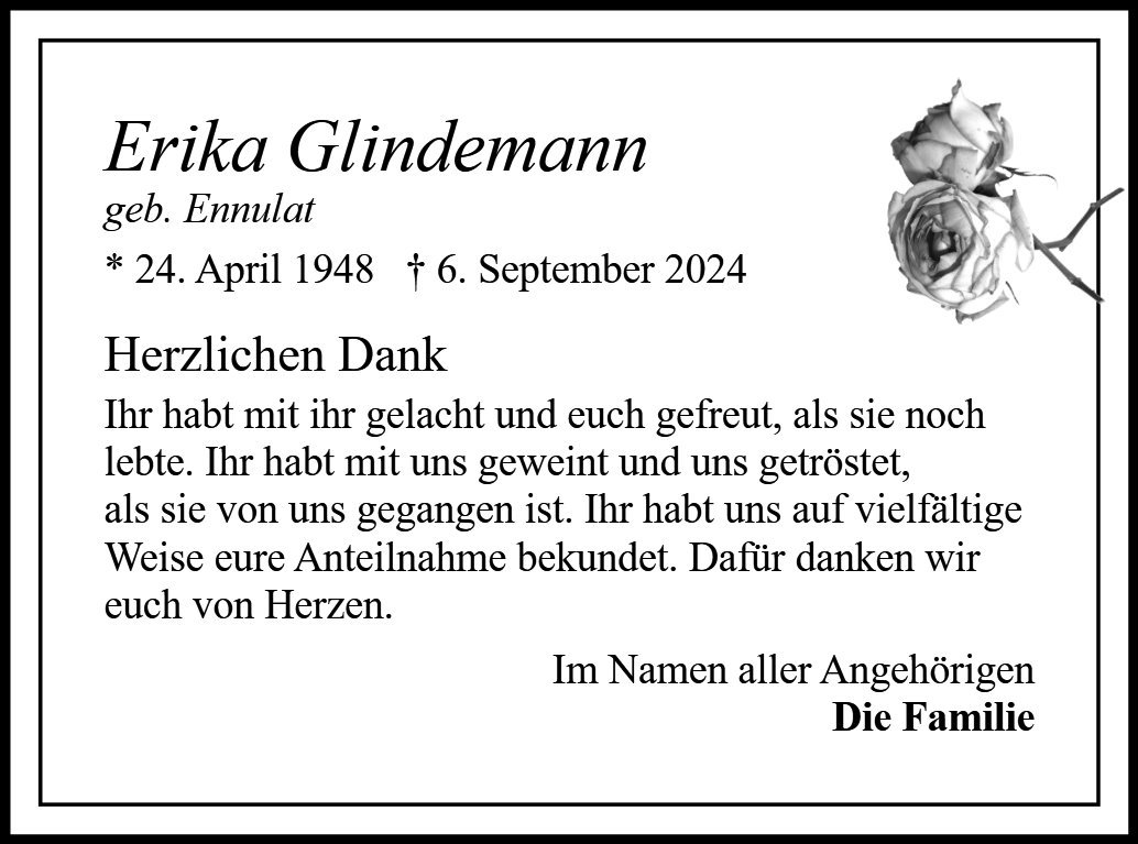 Erika Glindemanngestorben am 6. September 2024
