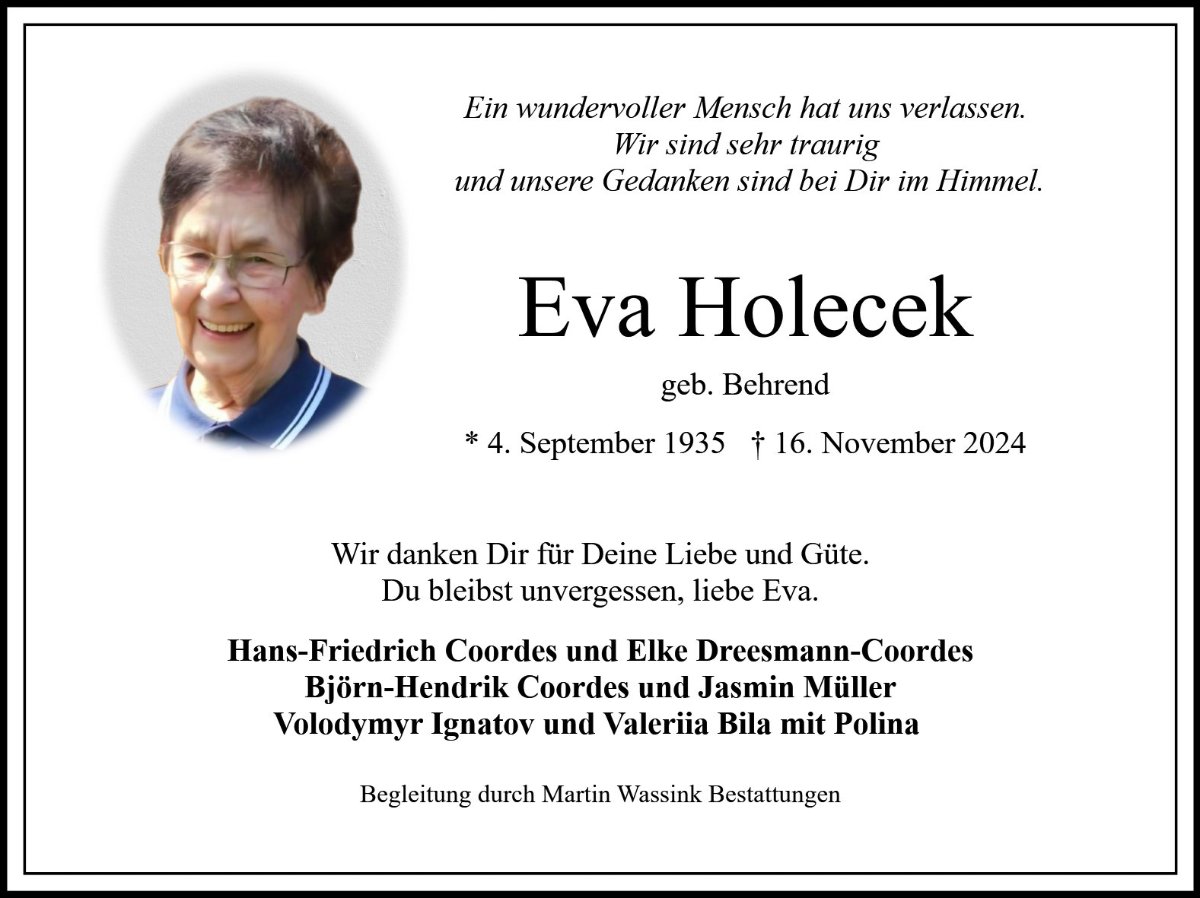 Eva Maria Holecekgestorben am 16. November 2024