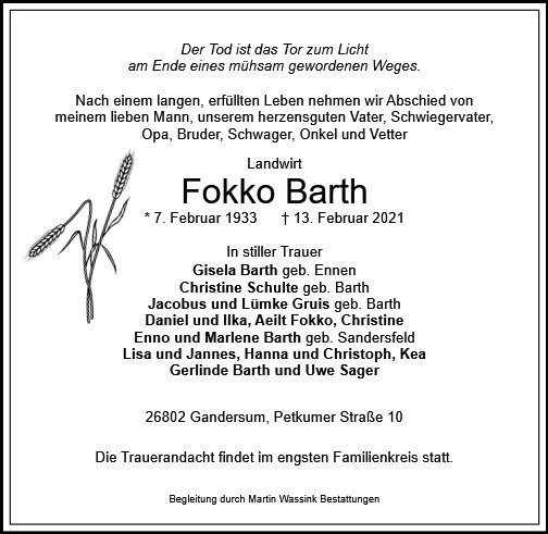 geboren am 7. Februar 1933 in Gandersum, jetzt Moormerland