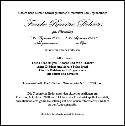 gestorben am 30. September 2020 in Leer