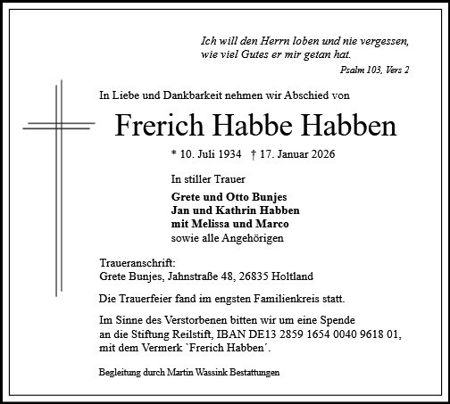 gestorben am 17. Januar 2026 in Rhauderfehn