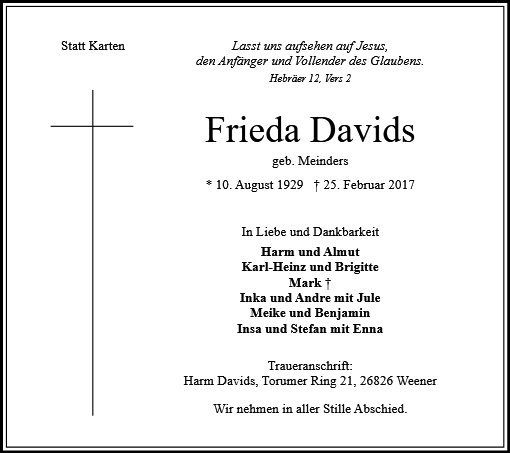 Frieda Davids geb. Meinders