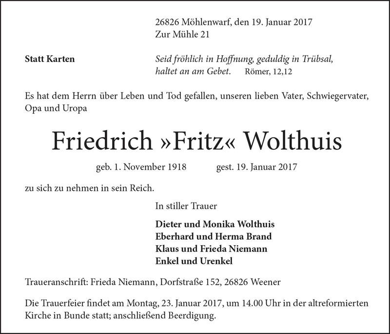 gestorben am 19. Januar 2017 in Weener