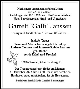 gestorben am 30. November 2022 in Weener