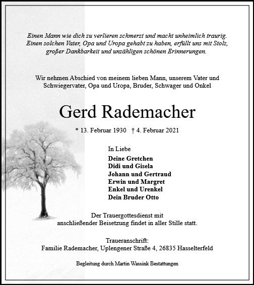 gestorben am 4. Februar 2021 in Hesel