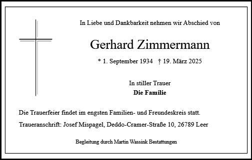 Mit tiefen Mitgefühl möchten die ehemaligen Kolleg*innen des Fachdienstes 2.61 der Stadt Leer auf diesem Wege ihr aufrichtiges Beileid aussprechen. Gerd Zimmermann war ein geschätzter Kollege , fachlich versierter Berater und vor allen Dingen ein kollegialer Mensch, dem wir viel zu verdanken haben. Wir werden sein Andenken in Ehren halten.