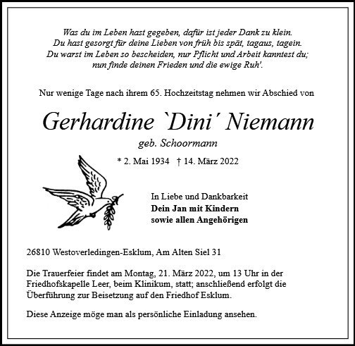 Gerhardine Niemann geb. Schoormann