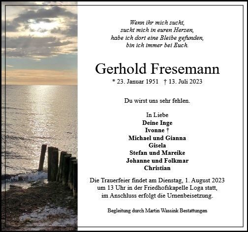 wir wünschen Ihnen für die kommende Zeit viel Kraft und dass es Ihnen gelingt, dankbar auf die positiven Erinnerungen zurückzublicken. Diese Gedenkseite möge Ihnen dabei helfen, Ihre Trauer zu teilen und das Andenken gemeinsam wachzuhalten.