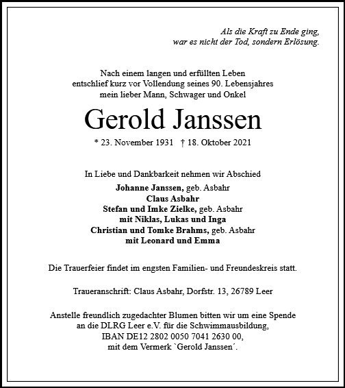 gestorben am 18. Oktober 2021 in Leer