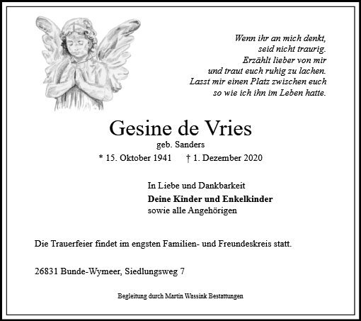 geboren am 15. Oktober 1941 in Ihrhove, jetzt Westoverledingen