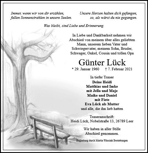 wir wünschen Ihnen für die kommende Zeit viel Kraft und dass es Ihnen gelingt, dankbar auf die positiven Erinnerungen zurückzublicken. Diese Gedenkseite möge Ihnen dabei helfen, Ihre Trauer zu teilen und das Andenken gemeinsam wachzuhalten.