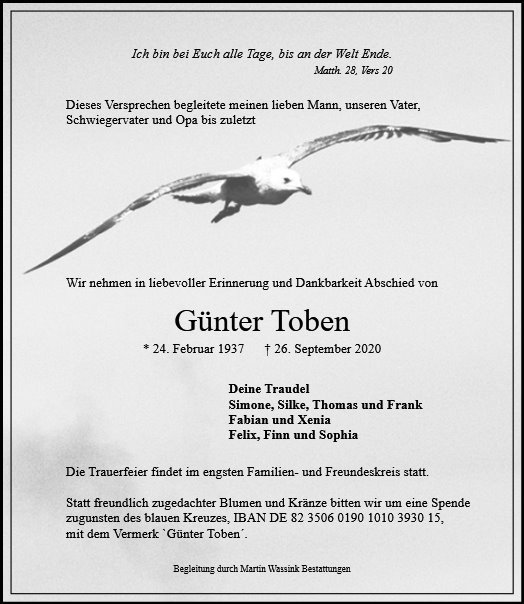 in diesen Tagen fühlen wir mit Ihnen und wünschen Ihnen von Herzen, dass Sie aus den glücklichen Erinnerungen Kraft schöpfen, um positiv in die Zukunft zu gehen. Diese Gedenkseite möge Ihnen dabei helfen, Ihre Trauer zu teilen und das Andenken gemeinsam wachzuhalten.