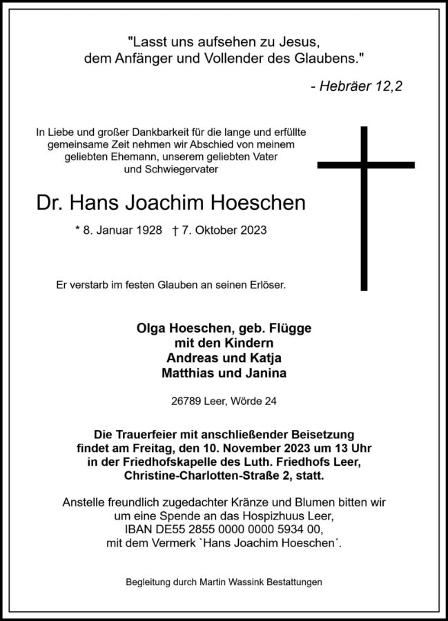 Hans Joachim Hoeschengestorben am 7. Oktober 2023