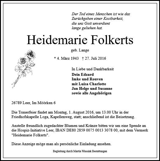Heidemarie Folkerts geb. Lange