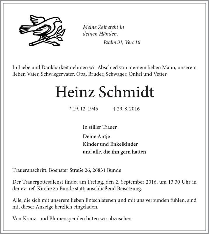 gestorben am 29. August 2016 in Bunde