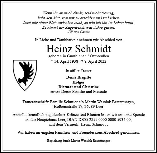 gestorben am 8. April 2022 in Leer