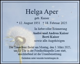 gestorben am 18. Februar 2025 in Leer