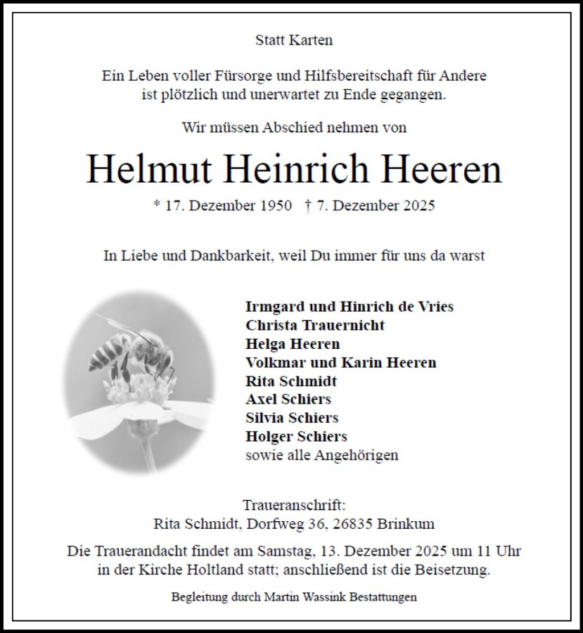 Helmut Heerengestorben am 7. Dezember 2025