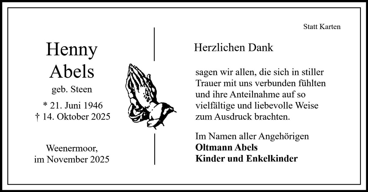 Henny Abelsgestorben am 14. Oktober 2025