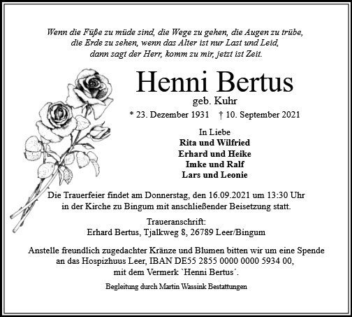 gestorben am 10. September 2021 in Leer