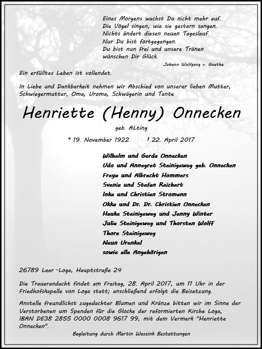 geboren am 19. November 1922 in Leezdorf, Brookmerland