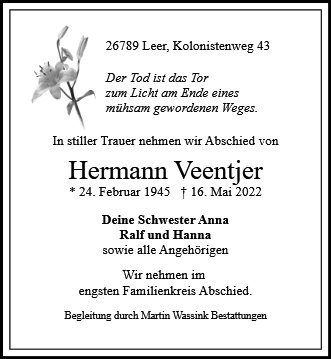 gestorben am 16. Mai 2022 in Aurich