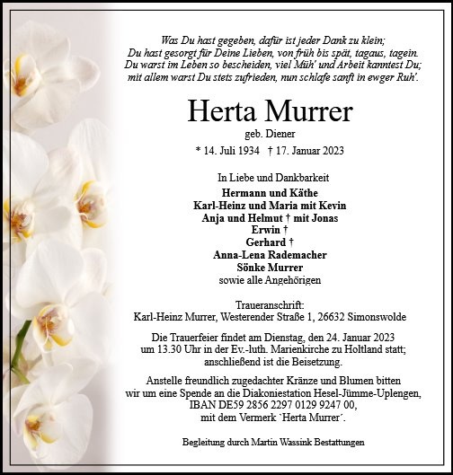 wir wünschen Ihnen für die kommende Zeit viel Kraft und dass es Ihnen gelingt, dankbar auf die positiven Erinnerungen zurückzublicken. Diese Gedenkseite möge Ihnen dabei helfen, Ihre Trauer zu teilen und das Andenken gemeinsam wachzuhalten.