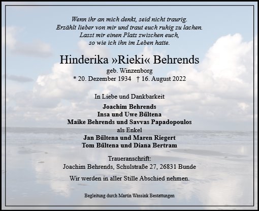 wir wünschen Ihnen von Herzen viel Kraft, dass Sie Menschen um sich haben, die Ihnen in dieser schweren Zeit beistehen und Halt geben. Zusätzlich können Sie auf dieser Gedenkseite Erinnerungen teilen und so das Andenken gemeinsam wachhalten.