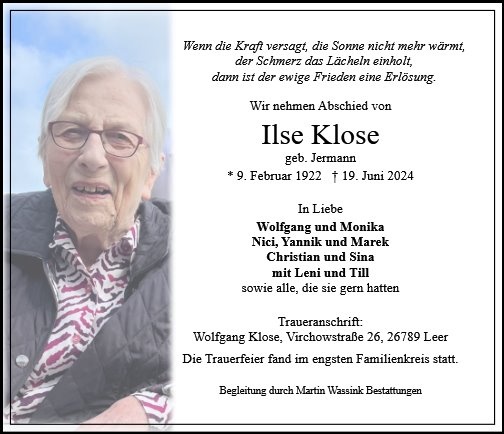 wir wünschen Ihnen von Herzen viel Kraft, dass Sie Menschen um sich haben, die Ihnen in dieser schweren Zeit beistehen und Halt geben. Zusätzlich können Sie auf dieser Gedenkseite Erinnerungen teilen und so das Andenken gemeinsam wachhalten.
